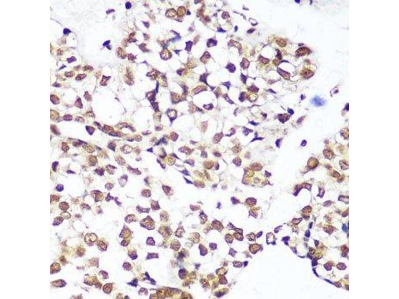 - Histones are basic nuclear proteins that are responsible for the nucleosome structure of the chromosomal fiber in eukaryotes. Nucleosomes consist of approximately 146 bp of DNA wrapped around a histone octamer composed of pairs of each of the four core histones (H2A, H2B, H3, and H4). The chromatin fiber is further compacted through the interaction of a linker histone, H1, with the DNA between the nucleosomes to form higher order chromatin structures. This gene is intronless and encodes a replication-dependent histone that is a member of the histone H3 family. Transcripts from this gene lack polyA tails, instead, they contain a palindromic termination element. This gene is located separately from the other H3 genes that are in the histone gene cluster on chromosome 6p22-p21.3.,H3.4,H3/g,H3FT,H3t,HIST3H3,Histone H3,HIST1H3A,Signal Transduction,MAPK-Erk Signaling Pathway,MAPK-P38 Signaling Pathway,Epigenetics & Nuclear Signaling,Epigenetic Modifications,Methylation,Histone H3