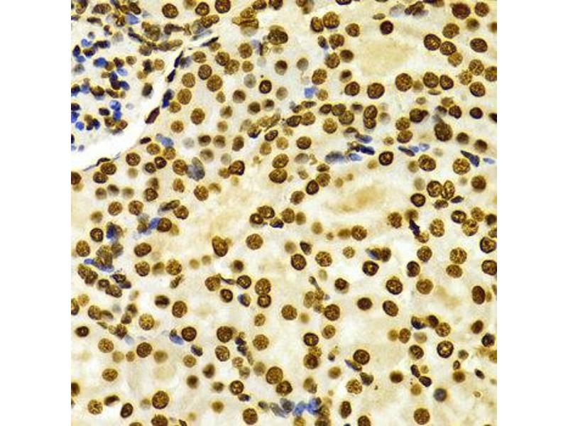 - Histones are basic nuclear proteins that are responsible for the nucleosome structure of the chromosomal fiber in eukaryotes. Nucleosomes consist of approximately 146 bp of DNA wrapped around a histone octamer composed of pairs of each of the four core histones (H2A, H2B, H3, and H4). The chromatin fiber is further compacted through the interaction of a linker histone, H1, with the DNA between the nucleosomes to form higher order chromatin structures. This gene is intronless and encodes a replication-dependent histone that is a member of the histone H3 family. Transcripts from this gene lack polyA tails, instead, they contain a palindromic termination element. This gene is located separately from the other H3 genes that are in the histone gene cluster on chromosome 6p22-p21.3.,H3.4,H3/g,H3FT,H3t,HIST3H3,Histone H3,HIST1H3A,Signal Transduction,MAPK-Erk Signaling Pathway,MAPK-P38 Signaling Pathway,Epigenetics & Nuclear Signaling,Epigenetic Modifications,Methylation,Histone H3