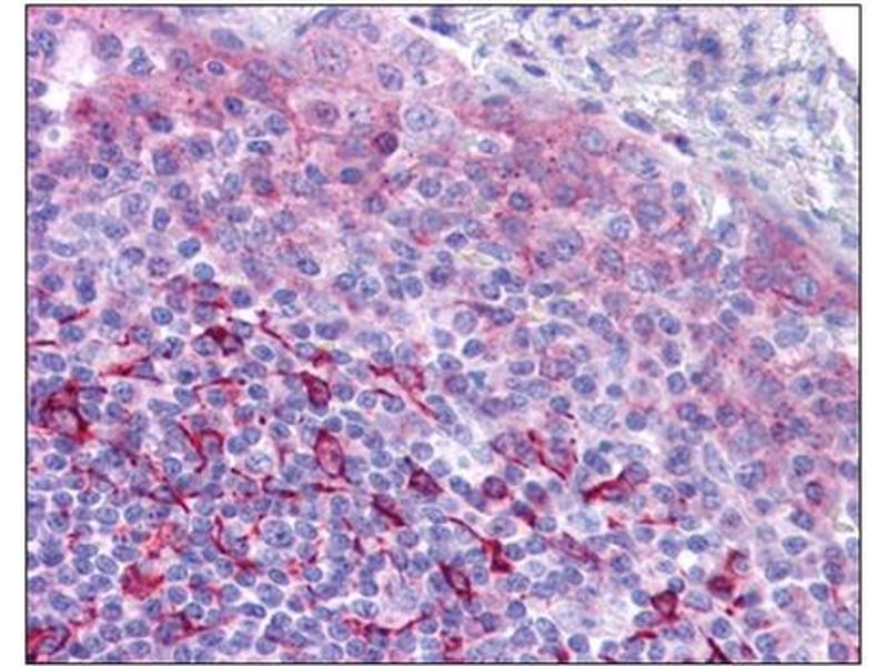 Immunohistochemistry on paraffin sections (10 μg/mL). Antigen retrieval: Steam slides in 0.01 M sodium citrate buffer, pH 6.0, at 99-100C for 20 min. Remove from heat and let stand at room temperature in buffer for 20 min. Rinse in 1xTBS with Tween (TBST) for 1 min. at room temperature. Other applications not tested. Optimal dilutions are dependent on conditions and should be determined by the user.