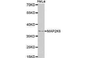 The Rabbit Polyclonal anti-MAP2K6 antibody has been validated for WB and IF. It is suitable to detect MAP2K6 in samples from Human. There are 2+ publications available.