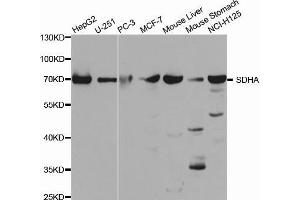 This Rabbit Polyclonal antibody specifically detects SDHA in WB, IHC and IF. It exhibits reactivity toward Human.It has been mentioned in 1 publication