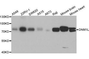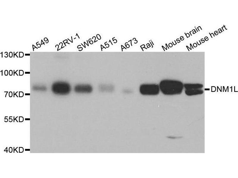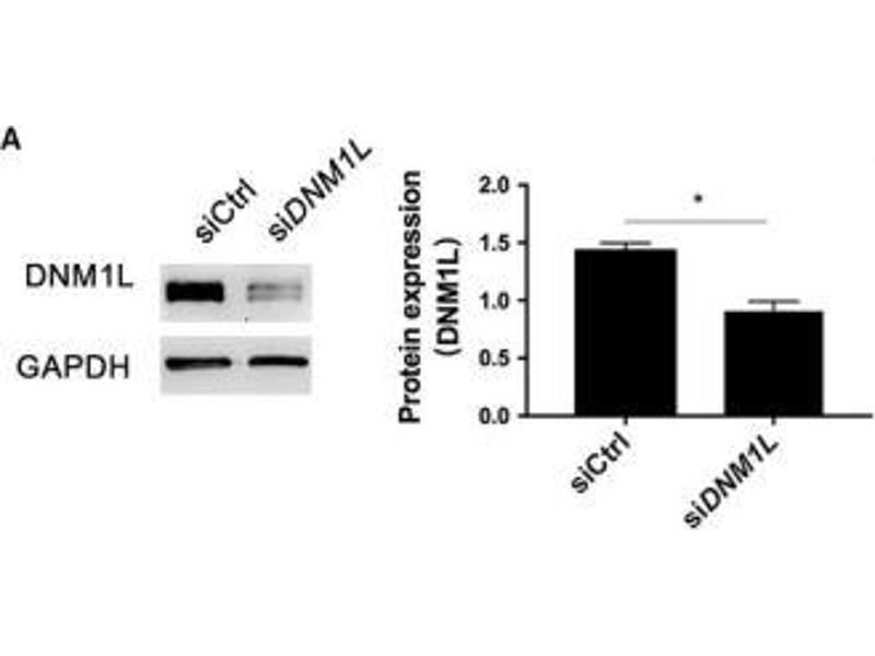 This gene encodes a member of the dynamin superfamily of GTPases. The encoded protein mediates mitochondrial and peroxisomal division, and is involved in developmentally regulated apoptosis and programmed necrosis. Dysfunction of this gene is implicated in several neurological disorders, including Alzheimer's disease. Mutations in this gene are associated with the autosomal dominant disorder, encephalopathy, lethal, due to defective mitochondrial and peroxisomal fission (EMPF). Alternative splicing results in multiple transcript variants encoding different isoforms.,DNM1L,DLP1,DRP1,DVLP,DYMPLE,EMPF,EMPF1,HDYNIV,Cancer,Signal Transduction,Cell Biology & Developmental Biology,Apoptosis,Endocrine & Metabolism,Mitochondrial metabolism,Mitochondrial markers,Neuroscience,Neurodegenerative Diseases,Dopamine Signaling in Parkinson's Disease,DNM1L