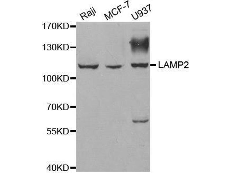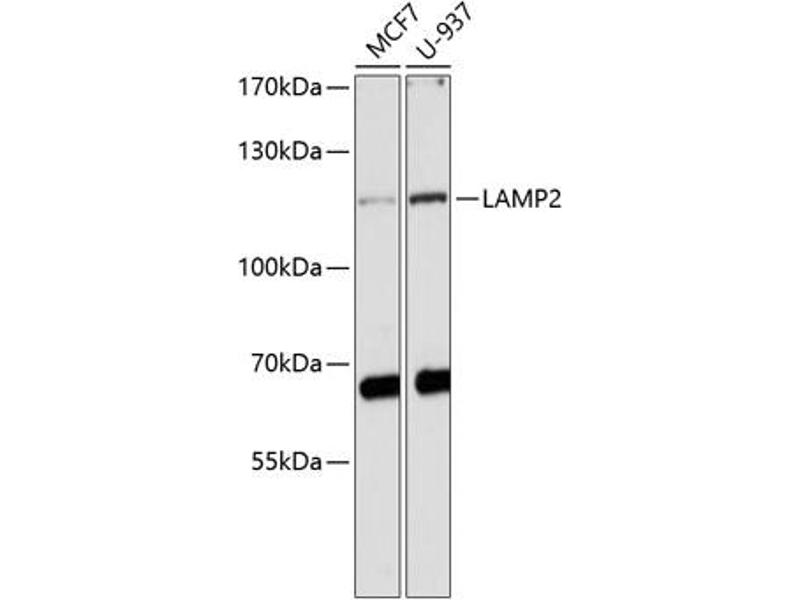 The protein encoded by this gene is a member of a family of membrane glycoproteins. This glycoprotein provides selectins with carbohydrate ligands. It may play a role in tumor cell metastasis. It may also function in the protection, maintenance, and adhesion of the lysosome. Alternative splicing of this gene results in multiple transcript variants encoding distinct proteins.,LAMP2,CD107b,LAMP-2,LAMPB,LGP-96,LGP110,Cancer,Signal Transduction,Cell Biology & Developmental Biology,Autophagy,Endocrine & Metabolism,Immunology & Inflammation,CD markers,Stem Cells,Hematopoietic Progenitors,Cardiovascular,Heart,LAMP2