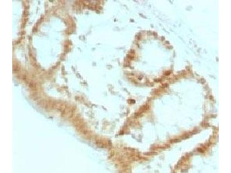 2. The prediluted format is supplied in a dropper bottle and is optimized for use in IHC. After epitope retrieval step (if required), drip mAb solution onto the tissue section and incubate at RT for 30 min.\. Flow Cytometry: 0.5-1 μg/million cells in 0.1ml,Immunofluorescence: 0.5-1 μg/mL,Western blot: 0.5-1 μg/mL,Immunohistochemistry (FFPE): 0.25-0.5 μg/mL for 30 min at RT (1),Prediluted format : incubate for 30 min at RT (2) -