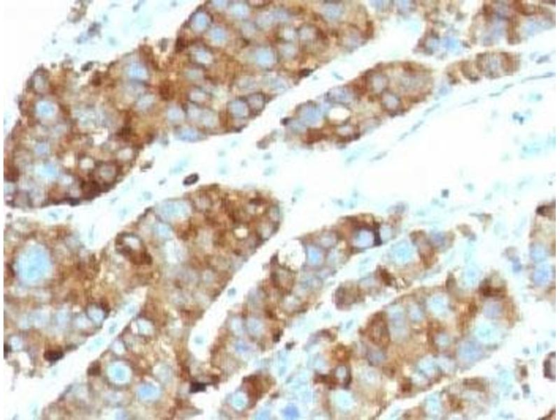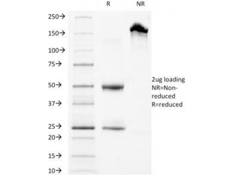 2. The prediluted format is supplied in a dropper bottle and is optimized for use in IHC. After epitope retrieval step (if required), drip mAb solution onto the tissue section and incubate at RT for 30 min.\. Flow Cytometry: 0.5-1 μg/million cells in 0.1ml,Immunofluorescence: 0.5-1 μg/mL,Immunohistochemistry (FFPE): 1-2 μg/mL for 30 min at RT (1),Prediluted format: incubate for 30 min at RT (2) -