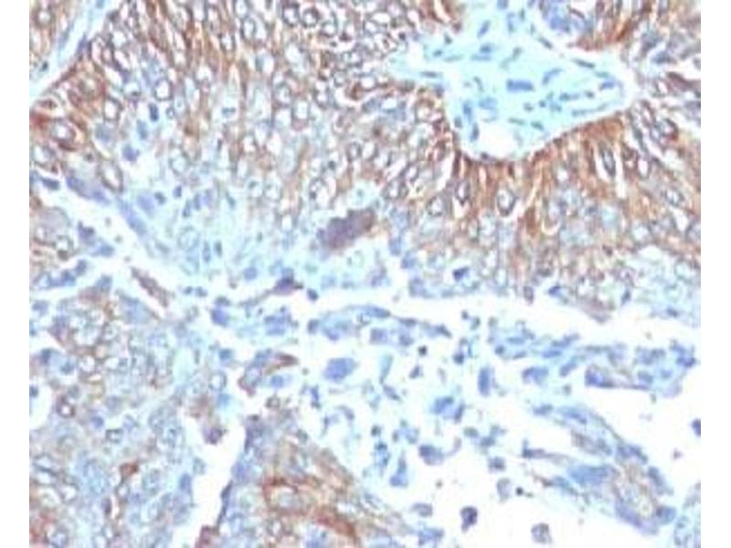 2. The prediluted format is supplied in a dropper bottle and is optimized for use in IHC. After epitope retrieval step (if required), drip mAb solution onto the tissue section and incubate at RT for 30 min.\. Immunofluorescence: 0.5-1 μg/mL,Immunohistochemistry (FFPE): 0.5-1 μg/mL for 30 min at RT (1),Prediluted format : incubate for 30 min at RT (2) -
