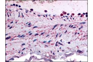 Immunohistochemistry on paraffin sections (14 μg/mL). Antigen retrieval: Steam slides in 0.01 M sodium citrate buffer, pH 6.0, at 99-100C for 20 min. Remove from heat and let stand at room temperature in buffer for 20 min. Rinse in 1xTBS with Tween (TBST) for 1 min. at room temperature. Other applications not tested. Optimal dilutions are dependent on conditions and should be determined by the user.