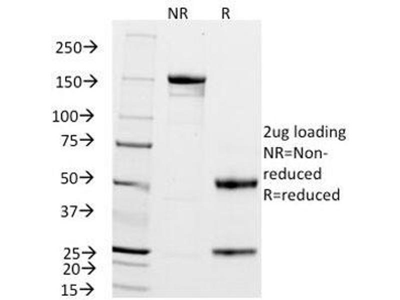 2. The prediluted format is supplied in a dropper bottle and is optimized for use in IHC. After epitope retrieval step (if required), drip mAb solution onto the tissue section and incubate at RT for 30 min.\. Western blot: 1-2 μg/mL, Flow Cytometry: 0.5-1 μg/million cells in 0.1ml,Immunofluorescence: 0.5-1 μg/mL,Immunohistochemistry (FFPE): 0.5-1 μg/mL for 30 min at RT (1),Prediluted format: incubate for 30 min at RT (2) -