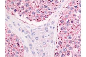Immunohistochemistry on paraffin sections (10 - 20 μg/mL). Antigen retrieval: Steam slides in 0.01 M sodium citrate buffer, pH 6.0, at 99-100C for 20 min. Remove from heat and let stand at room temperature in buffer for 20 min. Rinse in 1xTBS with Tween (TBST) for 1 min. at room temperature.