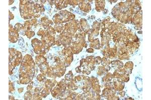2. The prediluted format is supplied in a dropper bottle and is optimized for use in IHC. After epitope retrieval step (if required), drip mAb solution onto the tissue section and incubate at RT for 30 min.\. Flow Cytometry: 0.5-1 μg/million cells in 0.1ml,Immunofluorescence: 0.5-1 μg/mL,Western blot: 0.5-1 μg/mL,Immunohistochemistry (FFPE): 0.25-0.5 μg/mL for 30 min at RT (1),Prediluted format: incubate for 30 min at RT (2) -