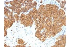 2. The prediluted format is supplied in a dropper bottle and is optimized for use in IHC. After epitope retrieval step (if required), drip mAb solution onto the tissue section and incubate at RT for 30 min.\. Flow Cytometry: 0.5-1 μg/million cells in 0.1ml,Immunofluorescence: 0.5-1 μg/mL,Immunohistochemistry (FFPE): 0.25-0.5 μg/mL for 30 min at RT (1),Prediluted format: incubate for 30 min at RT (2) -