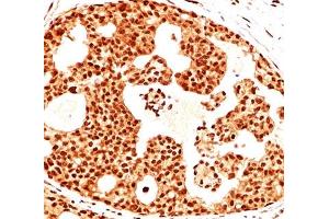 The concentration stated for each application is a general starting point. Variations in protocols, secondaries and substrates may require the Estrogen Receptor beta antibody to be titered up or down for optimal performance.1. Staining of formalin-fixed tissues requires boiling tissue sections in 10 mM citrate buffer, pH 6.0, for 10-20 min followed by cooling at RT for 20 minutes.