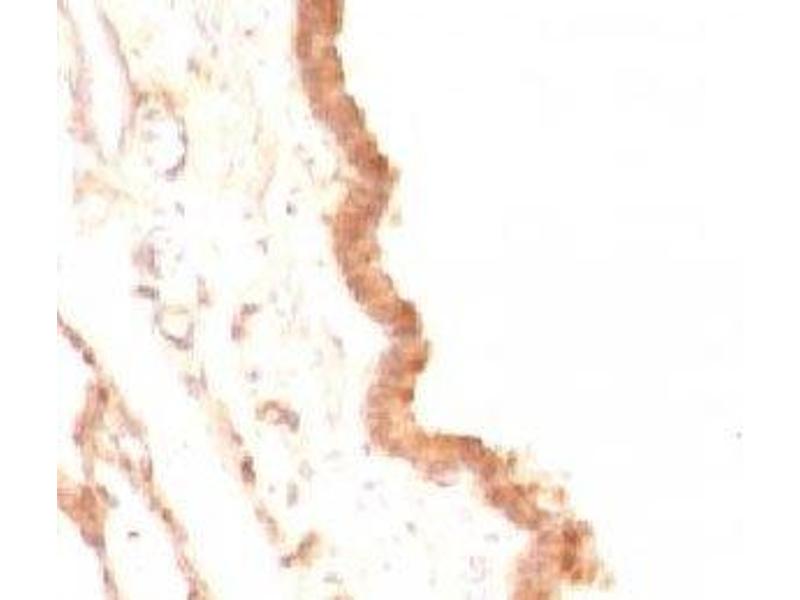 - Glypican-3 (GPC3) is a glycosylphospatidyl inositol-anchored membrane protein, which may also be found in a secreted form. Anti-GPC3 has been identified as a useful tumor marker for the diagnosis of hepatocellular carcinoma (HCC), hepatoblastoma, melanoma, testicular germ cell tumors, and Wilm s tumor. In patients with HCC, GPC3 is overexpressed in neoplastic liver tissue and elevated in serum, but is undetectable in normal liver, benign liver, and the serum of healthy donors. GPC3 expression is also found to be higher in HCC liver tissue than in cirrhotic liver or liver with focal lesions such as dysplastic nodules and areas of hepatic adenoma (HA) with malignant transformation. In the context of testicular germ cell tumors, GPC3 expression is up regulated in certain histologic subtypes, specifically yolk sac tumors and choriocarcinoma. A high level of GPC3 expression is also found in some types of embryonal tumors, such as Wilm s tumor and hepatoblastoma, with a low or undetectable expression in normal adjacent tissue. In patients with thyroid cancer, expression of GPC3 is dramatically enhanced in certain types of cancers: 100 % in follicular carcinoma and 70 % in papillary carcinoma. Expression of GPC3 in follicular carcinoma is significantly higher than that of follicular adenoma. In contrast, GPC3 is not expressed in anaplastic carcinoma.