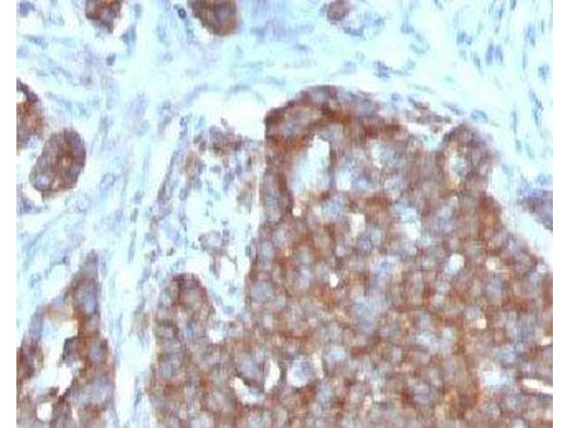 2. The prediluted format is supplied in a dropper bottle and is optimized for use in IHC. After epitope retrieval step (if required), drip mAb solution onto the tissue section and incubate at RT for 30 min.\. Flow Cytometry: 0.5-1 μg/million cells in 0.1ml,Immunofluorescence: 0.5-1 μg/mL,Immunohistochemistry (FFPE): 0.5-1 μg/mL for 30 min at RT (1),Prediluted format: incubate for 30 min at RT (2) -