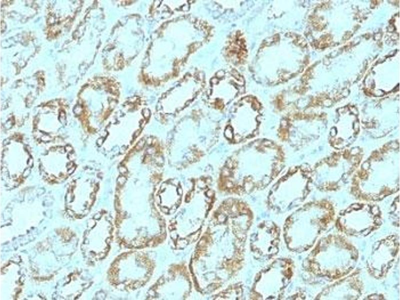 1. Staining of formalin-fixed tissues requires boiling tissue sections in 10 mM Citrate buffer, pH 6.0, for 10-20 min followed by cooling at RT for 20 min