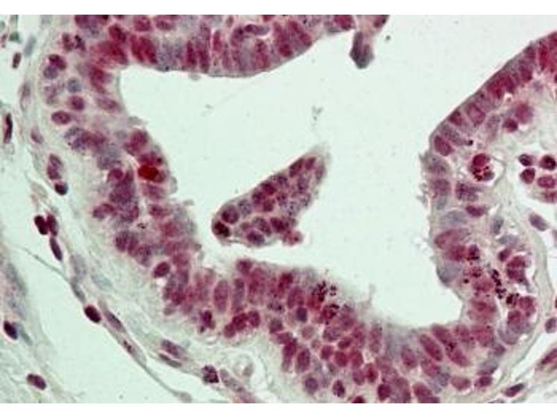 LSD1 (Lysine-specific demethylase 1), also called KDM1 (lysine (K)-specific demethylase 1A), is the first histone demethylase to be identified and regulates transcription via demethylation of lysines 4 and 9 of Histone H3. It negatively regulates pro-inflammatory cytokine expression by interacting with the genes promoter region. It also plays a role in tumor development where overexpression of LSD1 correlates with a poor prognosis. It is upregulated in cancers of the bladder, breast, lung, colon, and GI tract as well as neuroblastoma and cells of mesenchymal origin such as chondrosarcoma, osteosarcoma, rhabdomyosarcoma and Ewing's sarcoma (Bennani-Baiti et al, 2012).