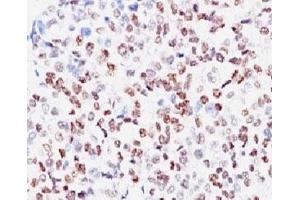 1. Staining of formalin-fixed tissues requires boiling tissue sections in 10 mM Citrate buffer, pH 6.0, for 10-20 min followed by cooling at RT for 20 minutes