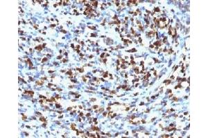 2. The prediluted format is supplied in a dropper bottle and is optimized for use in IHC. After epitope retrieval step (if required), drip mAb solution onto the tissue section and incubate at RT for 30 min.\. FACS: 0.5-1 μg/million cells,IF: 1-2 μg/mL,WB: 0.5-1 μg/mL,IHC (FFPE): 0.5-1 μg/mL for 30 minutes at RT (1),Prediluted format : incubate for 30 min at RT (2) -