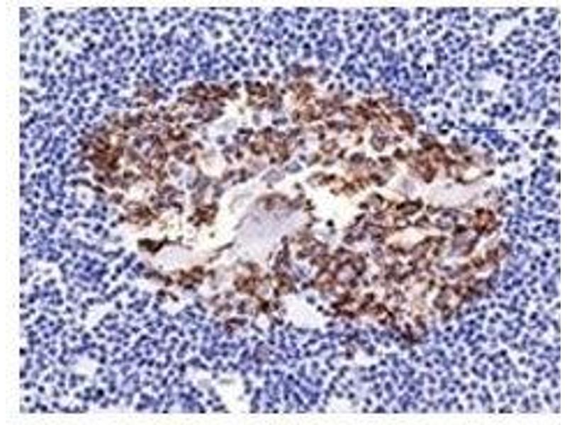 - Recognizes a neuraminidase-sensitive sialoprotein (CDw75), present on cell membrane and cytoplasm of germinal center B-cells and derived lymphomas. This mAb reacts with RBC precursors of bone marrow, ductal and ciliated epithelial cells of kidney, breast, prostate, pancreas, lung, and with glioblastomas, astrocytomas, and Reed Sternberg cells in lymphocyte predominant Hodgkin s disease. It is shown to be a helpful antibody for ascribing a B-cell phenotype in known lymphoid tissues.