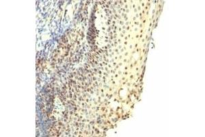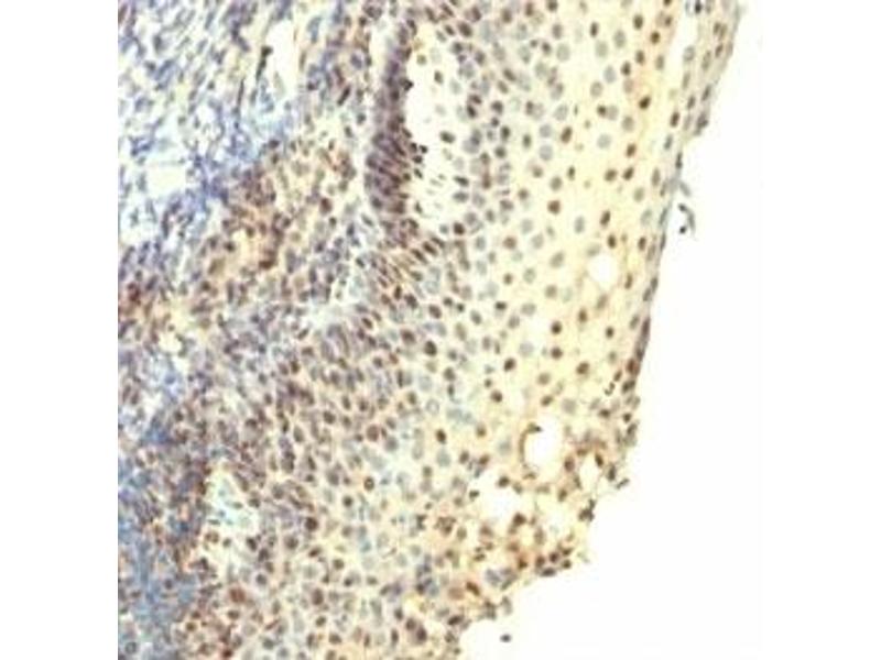 1. Staining of formalin-fixed tissues requires boiling tissue sections in 10 mM Citrate buffer, pH 6.0, for 10-20 min followed by cooling at RT for 20 min.
