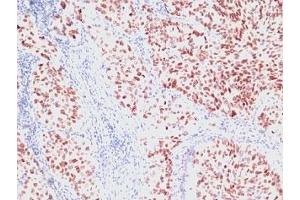 2. The prediluted format is supplied in a dropper bottle and is optimized for use in IHC. After epitope retrieval step (if required), drip mAb solution onto the tissue section and incubate at RT for 30 min.\. Flow Cytometry: 0.5-1 μg/million cells in 0.1ml,Immunofluorescence: 0.5-1 μg/mL,Immunohistochemistry (FFPE): 0.5-1 μg/mL for 30 minutes at RT (1),Prediluted format: incubate for 30 min at RT (2) -