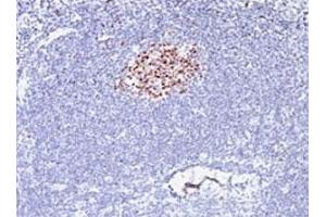 - Recognizes a protein of 95 kDa, which is identified as Bcl-6. Antibody to bcl-6 is helpful in a number of diagnostic settings: (1) In the differential diagnosis of small B-cell lymphoma. Follicular lymphoma will show bcl-6 (and CD10) positivity whereas other small B-cell lymphomas are usually negative. (2) Bcl-6 is an important prognostic marker in diffuse large B-cell lymphomas (DLBCL), where CD10, bcl-6 and MUM1/IRF4 are used to identify germinal center and activated B-cell phenotypes. (3) Bcl-6 can be valuable in distinguishing classical Hodgkin lymphoma from nodular lymphocyte predominant Hodgkin lymphoma (NLPHL). The Reed-Sternberg cells of classical Hodgkin lymphoma are bcl-6 negative whereas the large (L&H) cells of NLPHL are bcl-6 positive. In contrast, anti-Bcl-6 rarely stains mantle-cell lymphoma and MALT lymphoma.