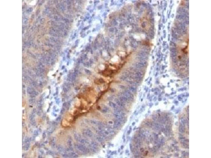 1. Staining of formalin-fixed tissues requires boiling tissue sections in 10 mM Citrate Buffer, pH 6.0, for 10-20 min followed by cooling at RT for 20 minutes.