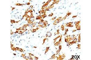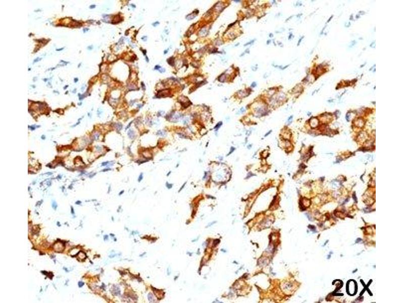 1. Staining of formalin-fixed tissues is enhanced by boiling tissue sections in 10 mM Citrate Buffer, pH 6.0, for 10-20 min followed by cooling at RT for 20 minutes.
