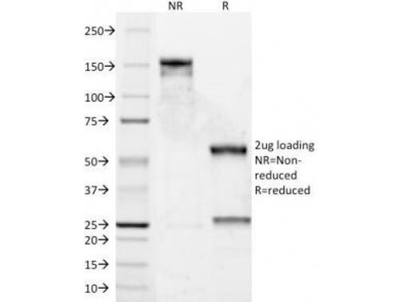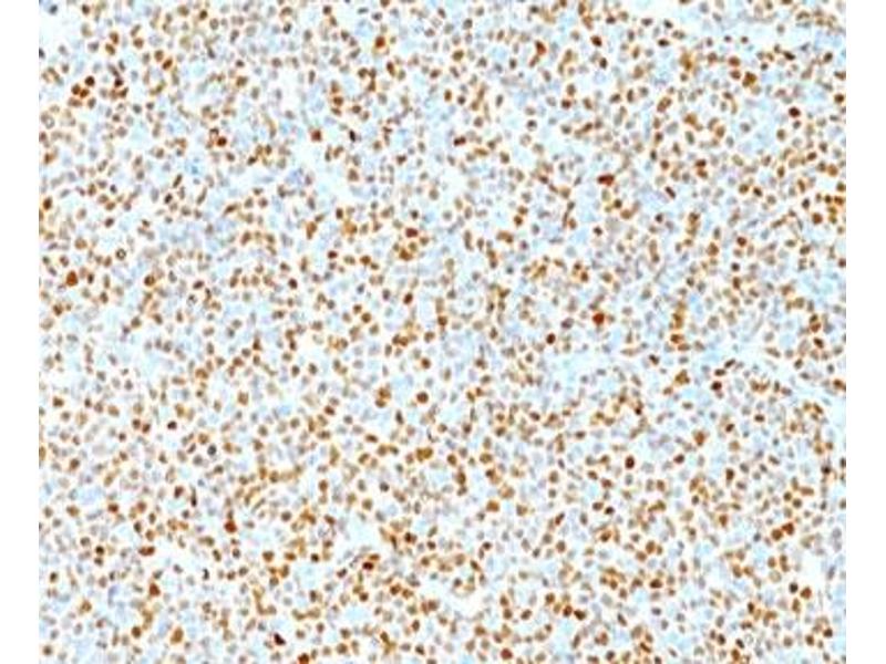 2. The prediluted format is supplied in a dropper bottle and is optimized for use in IHC. After epitope retrieval step (if required), drip mAb solution onto the tissue section and incubate at RT for 30 min.\. FACS: 0.5-1 μg/million cells,IF: 1-2 μg/mL,WB: 0.5-1 μg/mL,IHC (FFPE): 0.5-1 μg/mL for 30 minutes at RT (1),Prediluted format : incubate for 30 min at RT (2) -