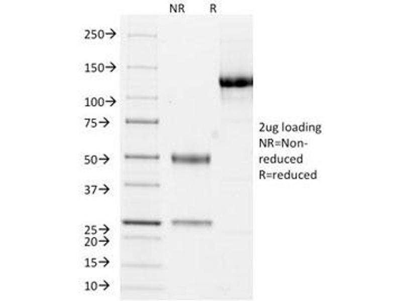 2. The prediluted format is supplied in a dropper bottle and is optimized for use in IHC. After epitope retrieval step (if required), drip mAb solution onto the tissue section and incubate at RT for 30 min.\. Flow Cytometry: 0.5-1 μg/million cells in 0.1ml,Immunofluorescence: 0.5-1 μg/mL,Western blot: 0.25-0.5 μg/mL,Immunohistochemistry (FFPE): 0.5-1 μg/mL for 30 min at RT (1),Prediluted format: incubate for 30 min at RT (2) -