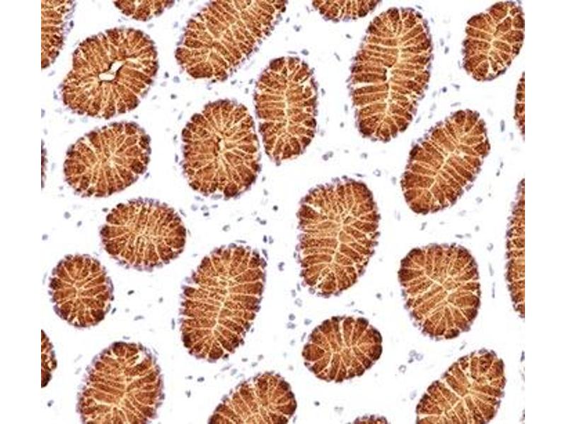 The concentration stated for each application is a general starting point. Variations in protocols, secondaries and substrates may require the MUC5AC antibody to be titered up or down for optimal performance.