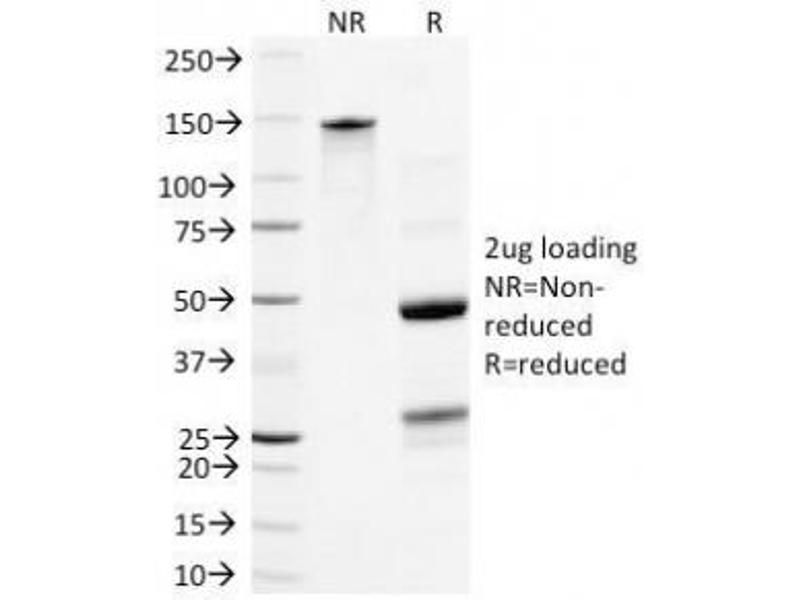 2. The prediluted format is supplied in a dropper bottle and is optimized for use in IHC. After epitope retrieval step (if required), drip mAb solution onto the tissue section and incubate at RT for 30 min.\. Immunofluorescence: 1-2 μg/mL,Flow Cytometry: 0.5-1 μg/million cells in 0.1ml,Immunohistochemistry (FFPE): 0.25-0.5 μg/mL for 30 min at RT (1),Prediluted format: incubate for 30 min at RT (2) -