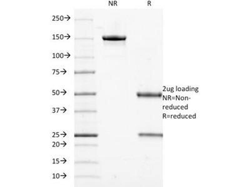 2. The prediluted format is supplied in a dropper bottle and is optimized for use in IHC. After epitope retrieval step (if required), drip mAb solution onto the tissue section and incubate at RT for 30 min.\. Western blot: 0.5-1 μg/mL,Flow Cytometry: 0.5-1 μg/million cells in 0.1ml,Immunofluorescence: 1-2 μg/mL,Immunohistochemistry (FFPE): 2-4 μg/mL for 30 min at RT (1),Prediluted format : incubate for 30 min at RT (2) -