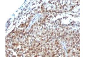 2. The prediluted format is supplied in a dropper bottle and is optimized for use in IHC. After epitope retrieval step (if required), drip mAb solution onto the tissue section and incubate at RT for 30 min.\. Flow Cytometry: 0.5-1 μg/million cells in 0.1ml,Immunofluorescence: 1-2 μg/mL,Immunohistochemistry (FFPE): 2-4 μg/mL for 30 min at RT (1),Prediluted format : incubate for 30 min at RT (2) -