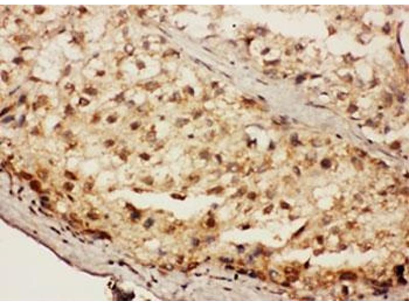 An amino acid sequence from the middle region of human SIAH Interacting Protein (NTRWDYLTQVEKECKE) was used as the immunogen for this SIP antibody (100% homologous in human, mouse and rat).