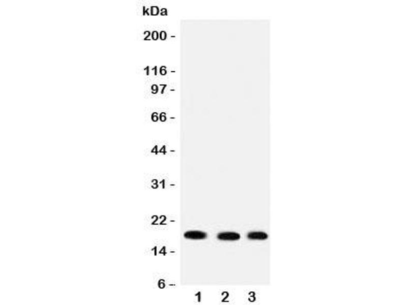 An amino acid sequence from the C-terminus of human UBC9/UBE2I (IKQILLGIQELLNE) was used as the immunogen for this UBC9 antibody (100% homologous in human, mouse and rat).