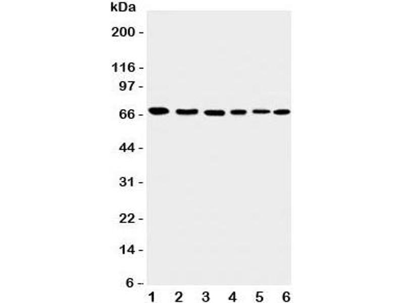 An amino acid sequence from the C-terminus of human AIFM1 (EQHEDLNEVAKLFNIHED) was used as the immunogen for this Apoptosis-Inducing Factor antibody (100% homologous in human, mouse and rat).