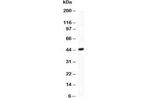The stated application concentrations are suggested starting points. Titration of the ATF2 antibody may be required due to differences in protocols and secondary/substrate sensitivity.\. Western blot: 0.5-1 μg/mL,IHC (Paraffin): 0.5-1 μg/mL,IHC (Frozen): 0.5-1 μg/mL,FACS: 1-3 μg/10^6 cells