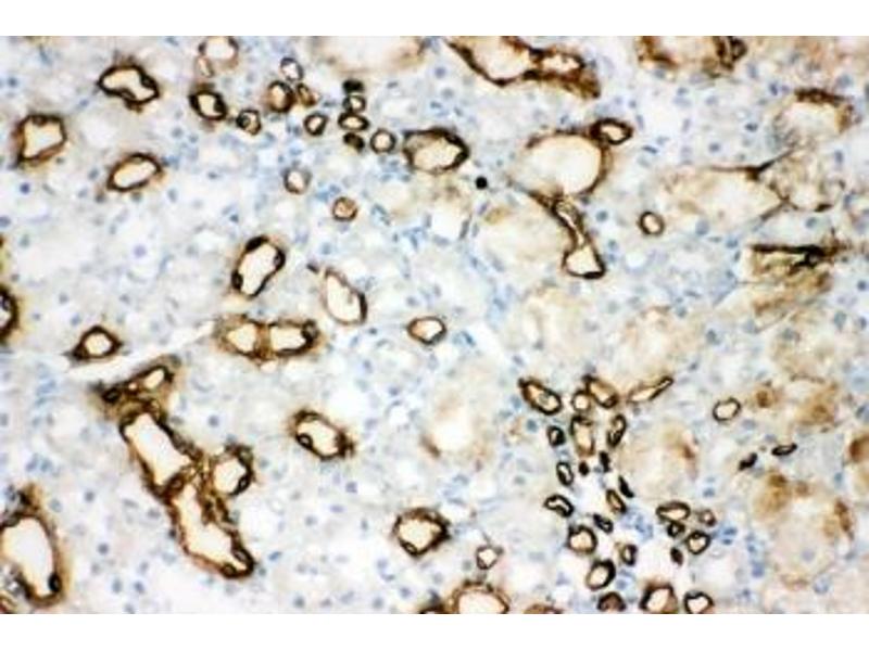 The stated application concentrations are suggested starting amounts. Titration of the AQP1 antibody may be required due to differences in protocols and secondary/substrate sensitivity.\. Western blot: 0.5-1 μg/mL,IHC (Paraffin): 0.5-1 μg/mL,IHC (Frozen): 0.5-1 μg/mL,FACS: 1-3 μg/10^6 cells