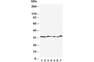 The stated application concentrations are suggested starting points. Titration of the Caspase-6 antibody may be required due to differences in protocols and secondary/substrate sensitivity.\. Western blot: 0.5-1 μg/mL,IHC (Paraffin): 0.5-1 μg/mL,IHC (Frozen): 0.5-1 μg/mL