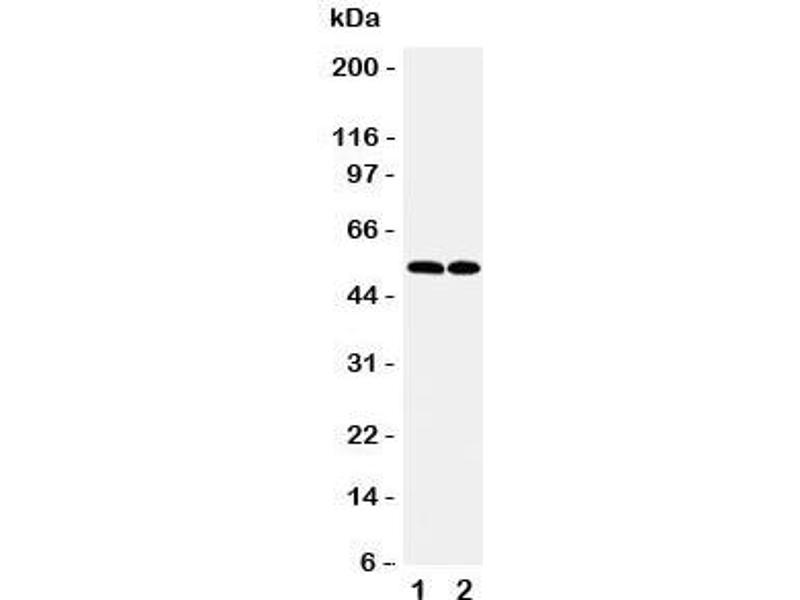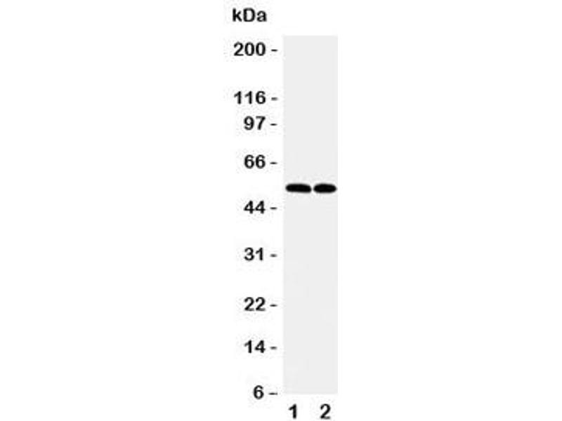An amino acid sequence from the N-terminus of human C-C chemokine receptor type 3 (MTTSLDTVETFGTTSYYDDV) was used as the immunogen for this CCR3 antibody.