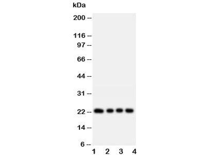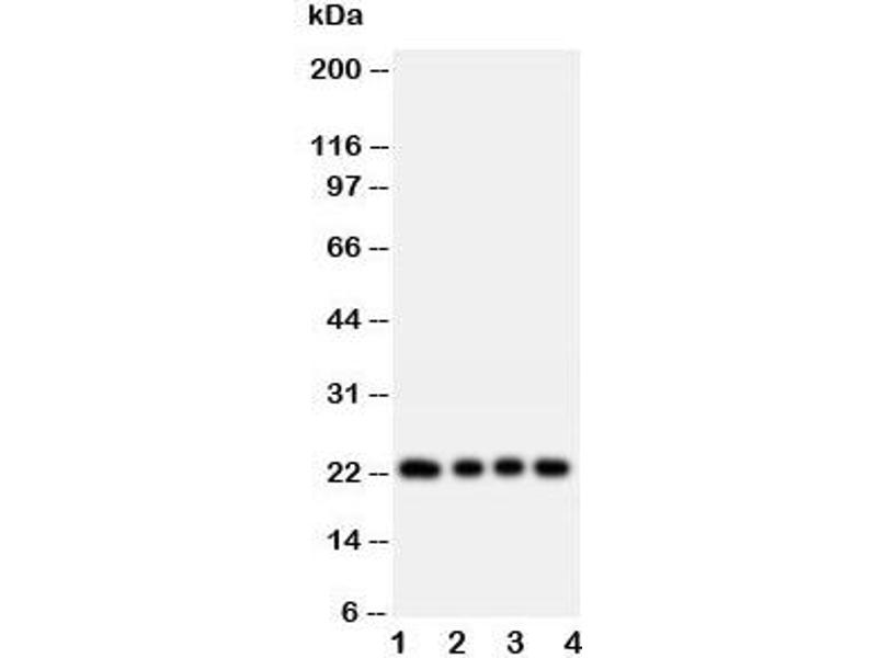 The stated application concentrations are suggested starting amounts. Titration of the FGF22 antibody may be required due to differences in protocols and secondary/substrate sensitivity.\. Western blot: 0.5-1 μg/mL