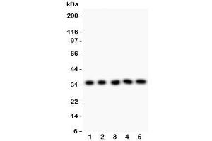 The stated application concentrations are suggested starting amounts. Titration of the Heme Oxygenase 1 antibody may be required due to differences in protocols and secondary/substrate sensitivity.\. Western blot: 0.5-1 μg/mL,IHC (Paraffin): 0.5-1 μg/mL