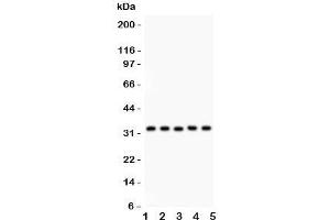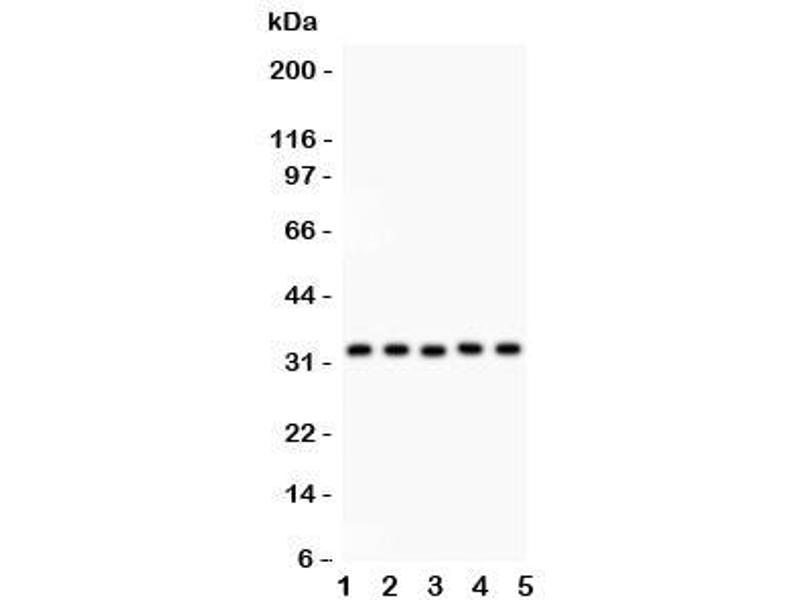 The stated application concentrations are suggested starting amounts. Titration of the HO-1 antibody may be required due to differences in protocols and secondary/substrate sensitivity.\. Western blot: 0.5-1 μg/mL
