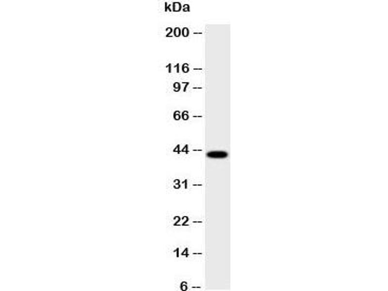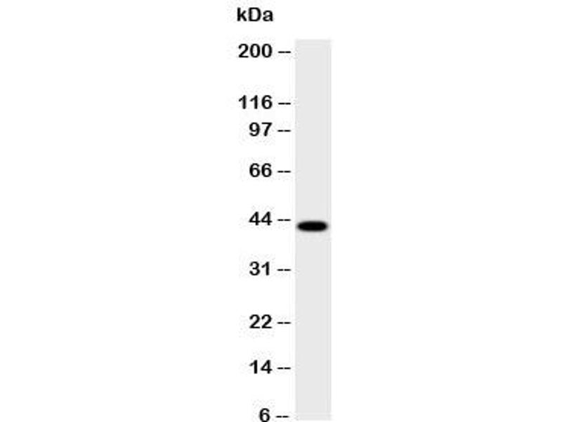 The stated application concentrations are suggested starting amounts. Titration of the HSD17B2 antibody may be required due to differences in protocols and secondary/substrate sensitivity.\. Western blot: 0.5-1 μg/mL,IHC (Paraffin): 0.5-1 μg/mL,IHC (Frozen): 0.5-1 μg/mL