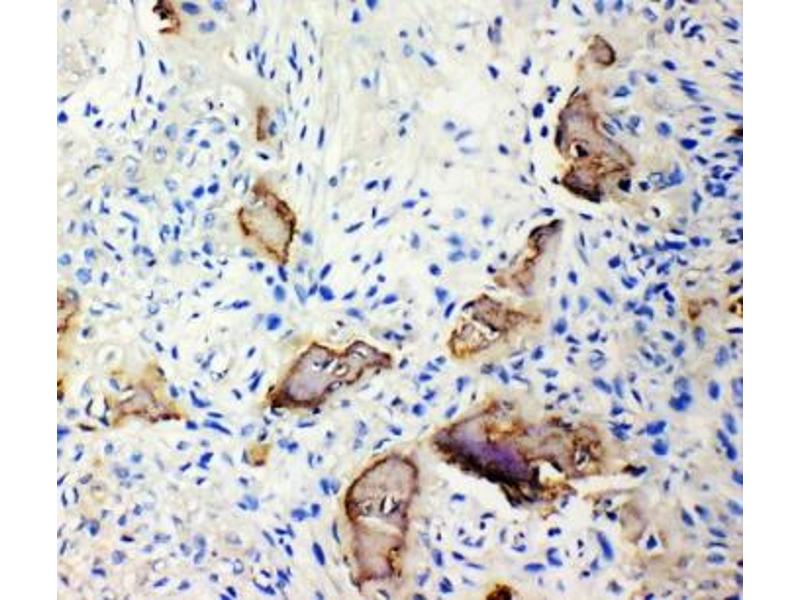 Integrin-binding sialoprotein, also known as Bone sialoprotein and BSP, is a major structural protein of the bone matrix. Bone sialoprotein is a predicted 35KD acidic glycoprotein that undergoes extensive posttranslational modifications and is visualized by western blot at up to 70KD. It constitutes approximately 12 % of the noncollagenous proteins in human bone and is synthesized by skeletal-associated cell types, including hypertrophic chondrocytes, osteoblasts, osteocytes, and osteoclasts. The only extraskeletal site of its synthesis is the trophoblast. This protein binds to calcium and hydroxyapatite via its acidic amino acid clusters, and mediates cell attachment through an RGD sequence that recognizes the vitronectin receptor. The BSP gene is mapped to 4q22.1.