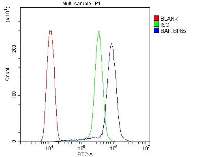 Background: BAK, officially called Bcl2 antagonist killer, is a protein that in humans, encoded by the BAK gene. The BAK protein is a pro-apoptotic member of the Bcl-2 gene family which is involved in initiating apoptosis. BAK gene spans 7.6 kb and contains 6 exons. By Southern blot analysis of genomic DNA from human/rodent somatic cell hybrids, BAK gene is localized to chromosome 6. This protein localizes to mitochondria, and functions to induce apoptosis. It interacts with and accelerates the opening of the mitochondrial voltage-dependent anion channel, which leads to a loss in membrane potential and the release of cytochrome. This protein also interacts with the tumor suppressor P53 after exposure to cell stress.
