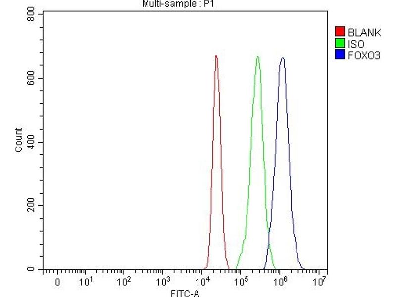 Background: Forkhead box O3, also known as FKHRL1 or FOXO3a, is a human protein encoded by the FOXO3 gene. FOXO3 belongs to the O subclass of the forkhead family of transcription factors which are characterized by a distinct fork head DNA-binding domain. It is mapped to 6q21. This protein likely functions as a trigger for apoptosis through upregulation of genes necessary for cell death, such as Bim and PUMA, or downregulation of anti-apoptotic proteins such as FLIP. In mammals FOXO3 regulates the resistance of cells to stress by inducing DNA repair and thereby may also affect organismal life span. In addition, it is thought that FOXO3 is also involved in protection from oxidative stress by upregulating antioxidants such as catalase and MnSOD.