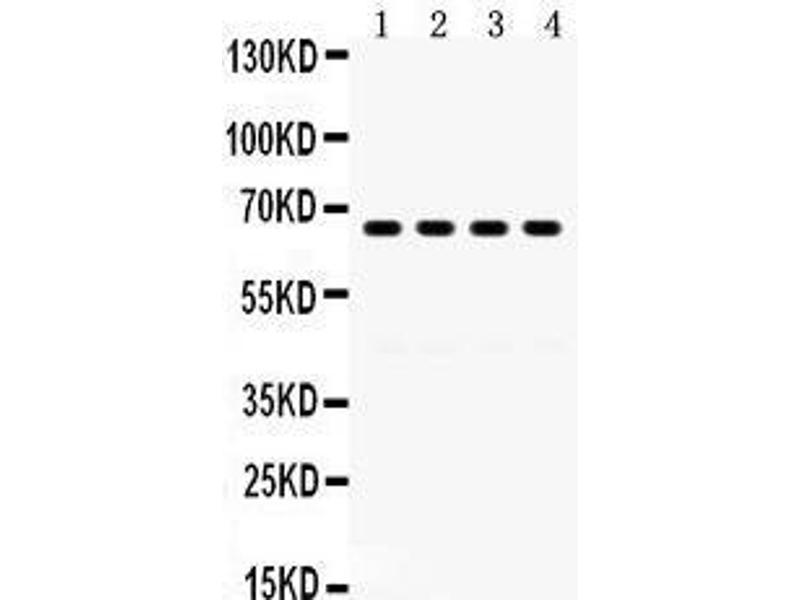 The GRK6 antibody ABIN3042435 is able to detect all four tested GRK6 isoforms, but gives strong background-signals around 55kDa.