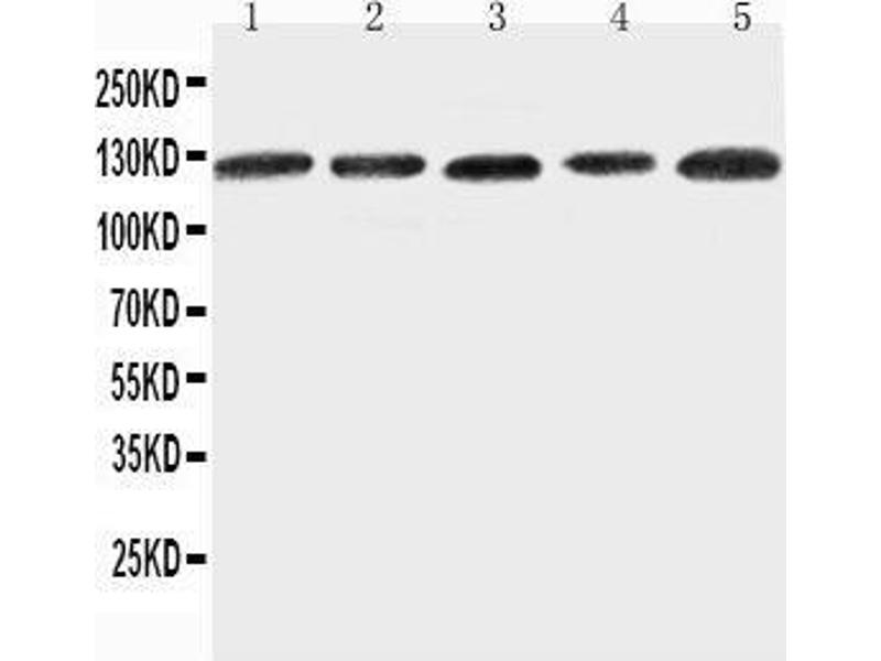 Tissue Specificity: Isoforms containing segment A are predominantly expressed in skeletal muscle. Isoforms containing segment B are abundantly expressed in skeletal muscle, moderately in cardiac muscle, small intestine, colon, ovary and prostate and weakly in lung and testes. Isoforms containing segment X2D are expressed at low levels in fetal and adult skeletal muscle and in cardiac muscle, but are not detected in myoblasts and myotubes. In muscle fibers isoforms containing segment A and B are expressed at myotendinous and neuromuscular junctions, isoforms containing segment C are expressed at neuromuscular junctions and at extrasynaptic sites. Isoforms containing segments X1 or X2 or, at low levels, X1X2 are expressed in fetal and adult skeletal muscle (myoblasts and myotubes) and cardiac muscle. .